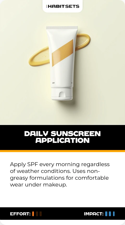 Apply SPF every morning regardless of weather conditions. Uses non-greasy formulations for comfortable wear under makeup.