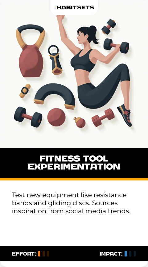 Test new equipment like resistance bands and gliding discs. Sources inspiration from social media trends.
