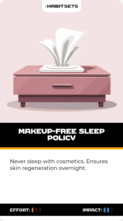 Never sleep with cosmetics. Ensures skin regeneration overnight.