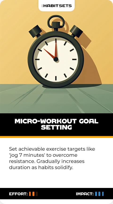 Set achievable exercise targets like 'jog 7 minutes' to overcome resistance. Gradually increases duration as habits solidify.