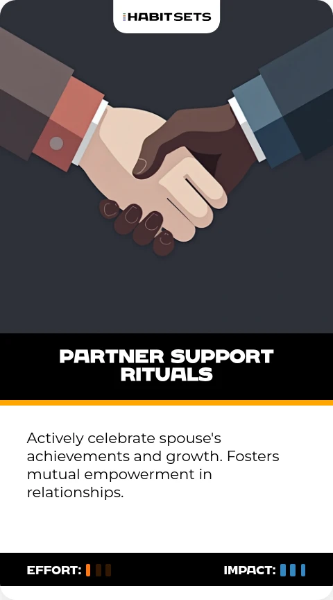 Actively celebrate spouse's achievements and growth. Fosters mutual empowerment in relationships.