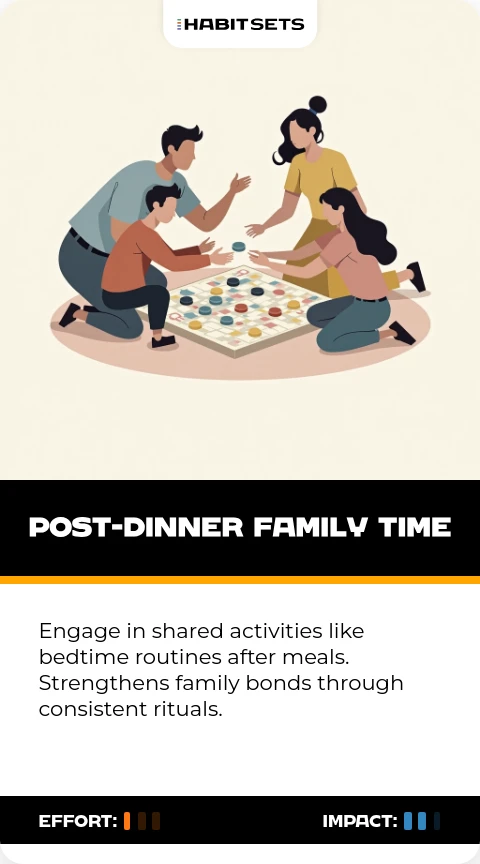 Engage in shared activities like bedtime routines after meals. Strengthens family bonds through consistent rituals.