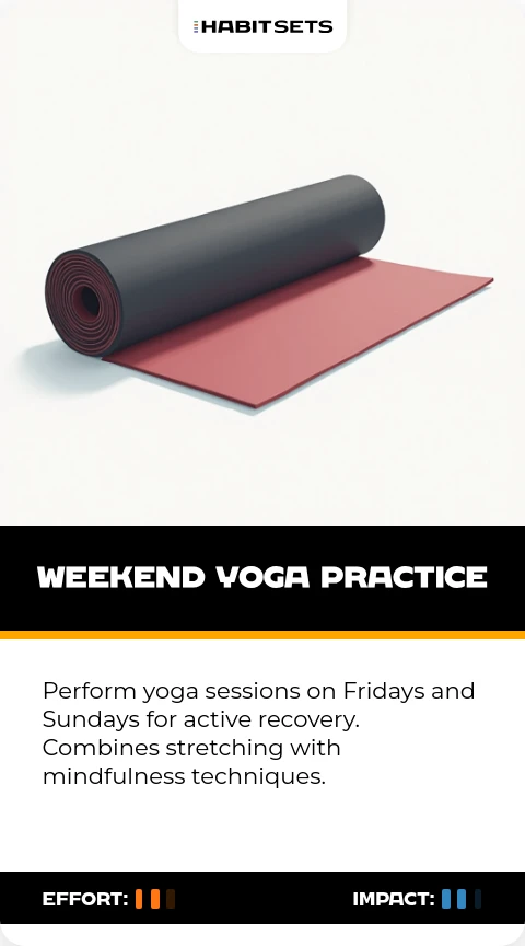 Perform yoga sessions on Fridays and Sundays for active recovery. Combines stretching with mindfulness techniques.