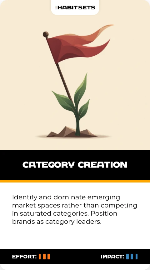Identify and dominate emerging market spaces rather than competing in saturated categories. Position brands as category leaders.