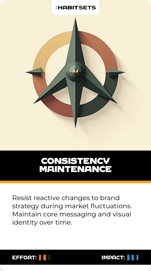 Resist reactive changes to brand strategy during market fluctuations. Maintain core messaging and visual identity over time.