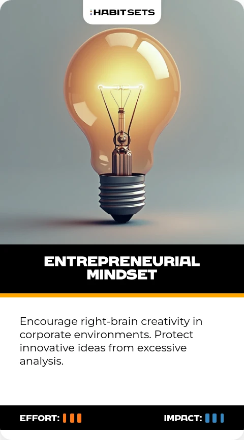 Encourage right-brain creativity in corporate environments. Protect innovative ideas from excessive analysis.