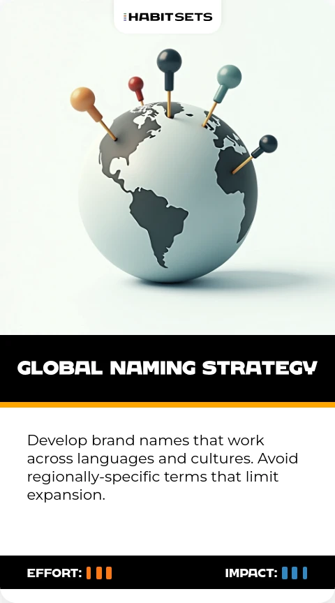 Develop brand names that work across languages and cultures. Avoid regionally-specific terms that limit expansion.