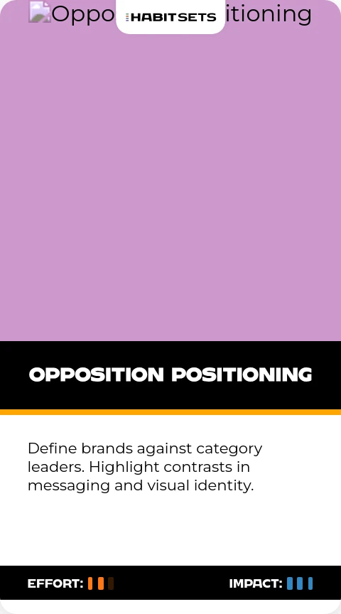Define brands against category leaders. Highlight contrasts in messaging and visual identity.