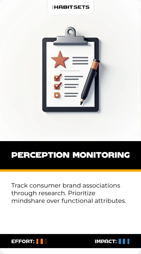 - Perception Monitoring: Understand and track consumer perceptions of your brand, as mindshare is often more critical than functional features.
