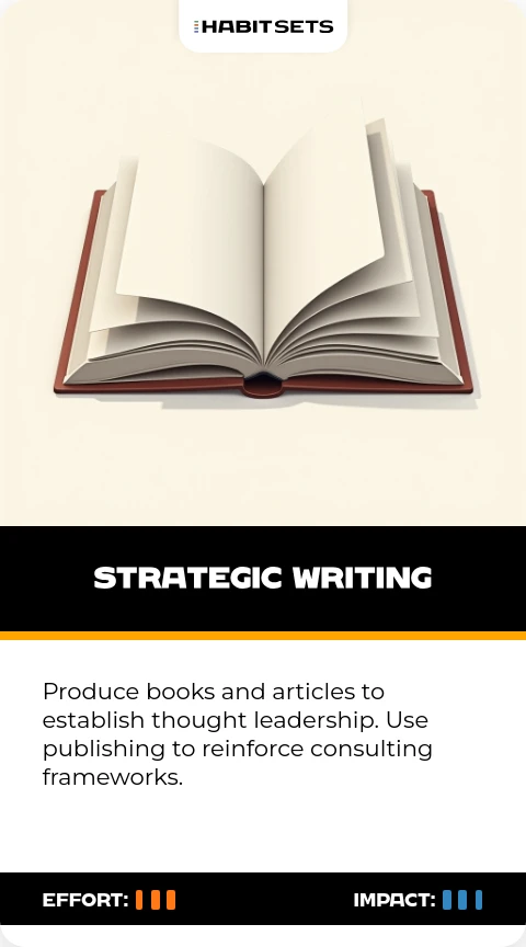 Produce books and articles to establish thought leadership. Use publishing to reinforce consulting frameworks.