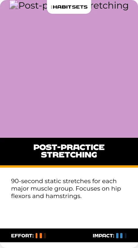 90-second static stretches for each major muscle group. Focuses on hip flexors and hamstrings.