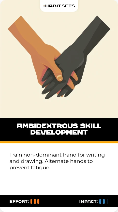 Train non-dominant hand for writing and drawing. Alternate hands to prevent fatigue.