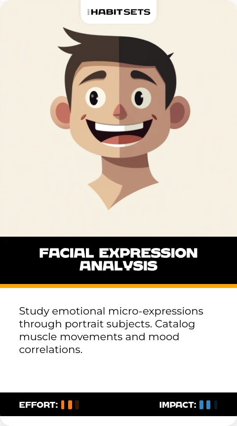 Study emotional micro-expressions through portrait subjects. Catalog muscle movements and mood correlations.