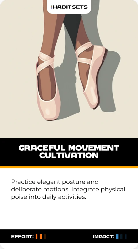 Practice elegant posture and deliberate motions. Integrate physical poise into daily activities.