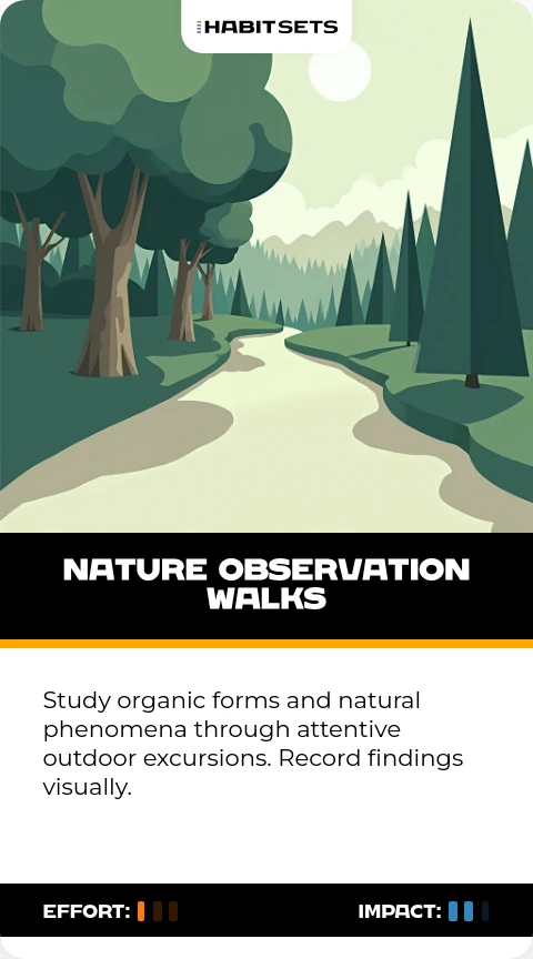 Study organic forms and natural phenomena through attentive outdoor excursions. Record findings visually.