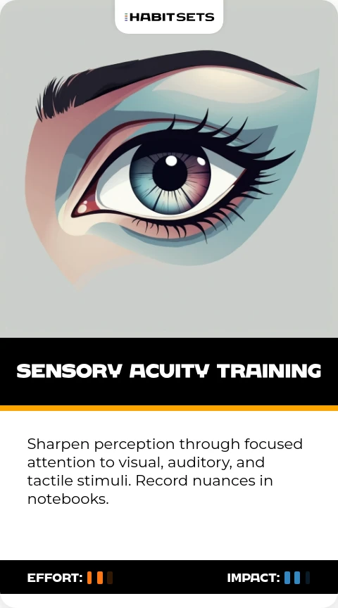Sharpen perception through focused attention to visual, auditory, and tactile stimuli. Record nuances in notebooks.