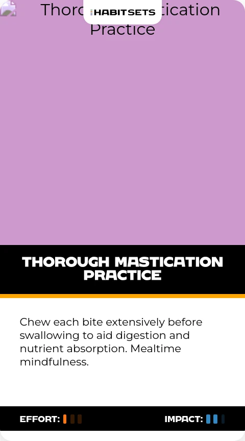 Chew each bite extensively before swallowing to aid digestion and nutrient absorption. Mealtime mindfulness.