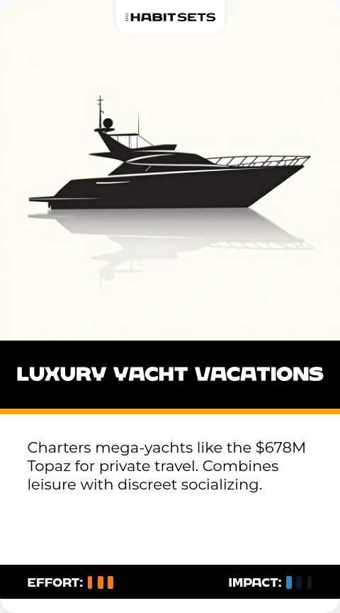 Charters mega-yachts like the $678M Topaz for private travel. Combines leisure with discreet socializing.