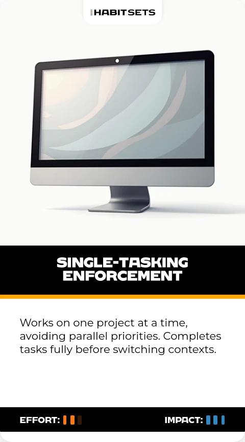 Works on one project at a time, avoiding parallel priorities. Completes tasks fully before switching contexts.