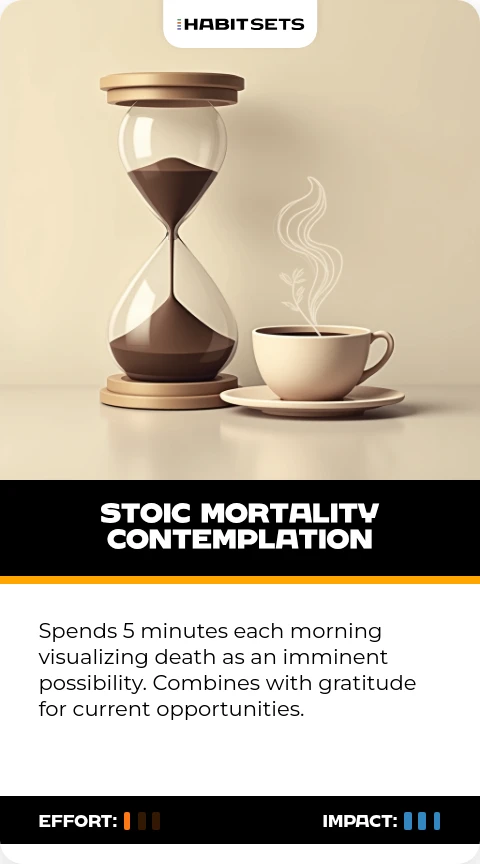Fridman adopts this Marcus Aurelius-inspired practice to intensify focus on meaningful work. It reduces procrastination by emphasizing life's fragility.