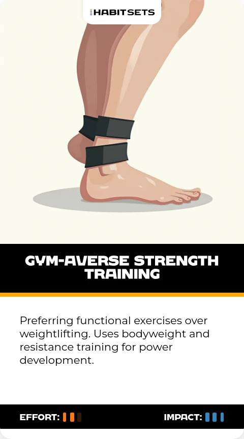 Preferring functional exercises over weightlifting. Uses bodyweight and resistance training for power development.