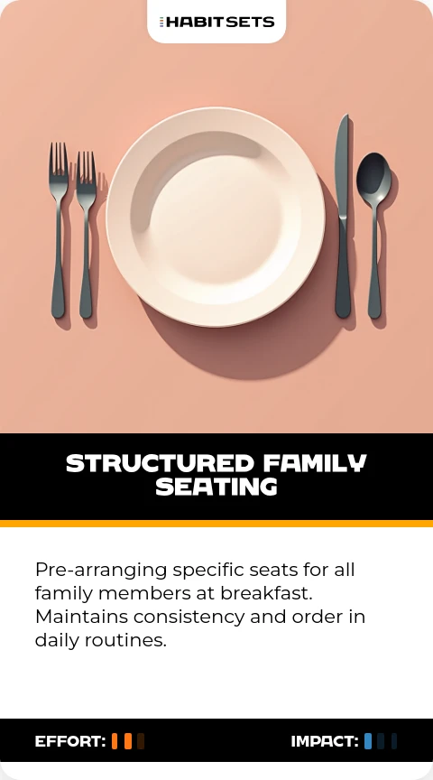 Pre-arranging specific seats for all family members at breakfast. Maintains consistency and order in daily routines.