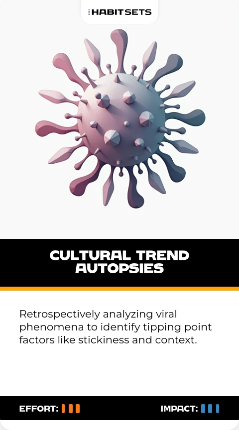 Retrospectively analyzing viral phenomena to identify tipping point factors like stickiness and context.