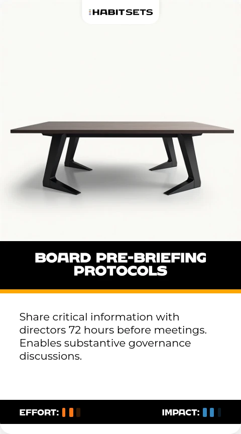 Share critical information with directors 72 hours before meetings. Enables substantive governance discussions.