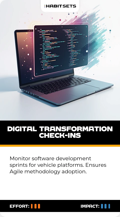 Monitor software development sprints for vehicle platforms. Ensures Agile methodology adoption.