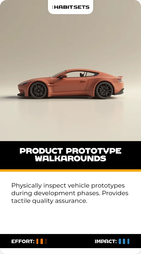 Physically inspect vehicle prototypes during development phases. Provides tactile quality assurance.
