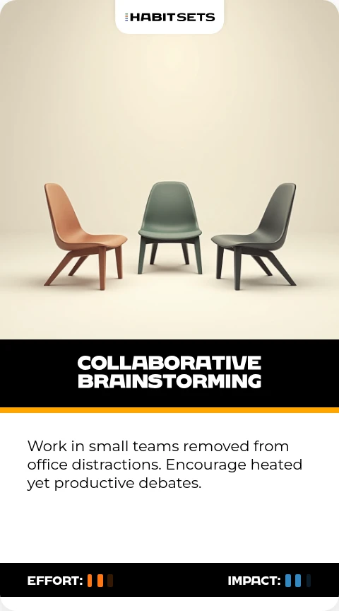 - Collaborative Intensity: Foster focused, high-pressure brainstorming sessions in small, distraction-free teams.