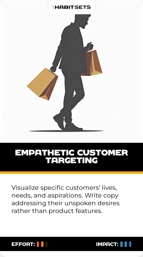 Visualize specific customers’ lives, needs, and aspirations. Write copy addressing their unspoken desires rather than product features.