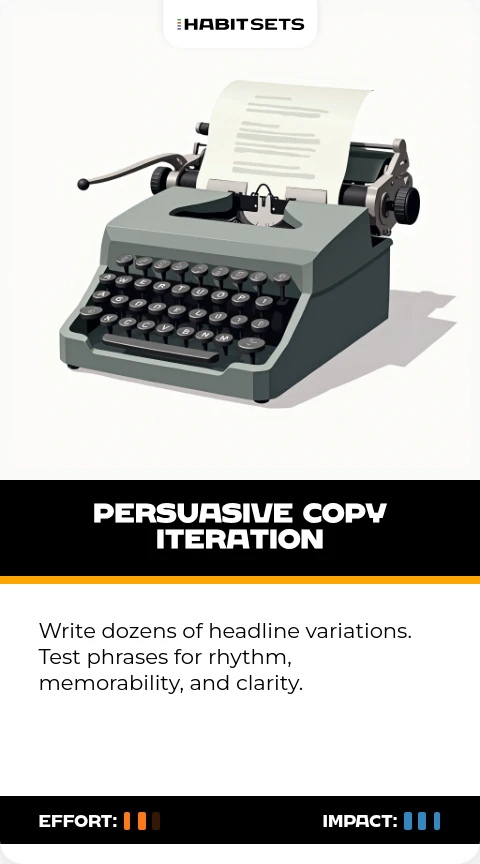 Write dozens of headline variations. Test phrases for rhythm, memorability, and clarity.