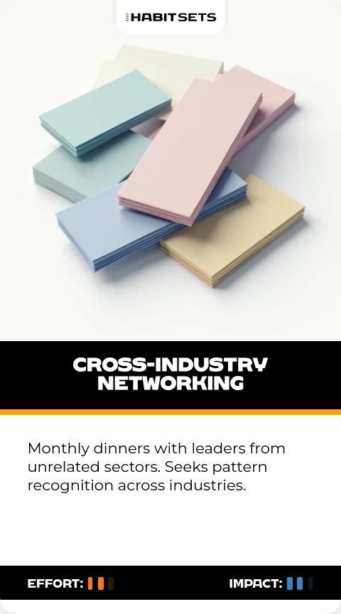 Monthly dinners with leaders from unrelated sectors. Seeks pattern recognition across industries.