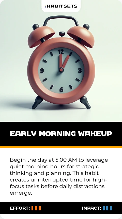 Begin the day at 5:00 AM to leverage quiet morning hours for strategic thinking and planning. This habit creates uninterrupted time for high-focus tasks before daily distractions emerge.