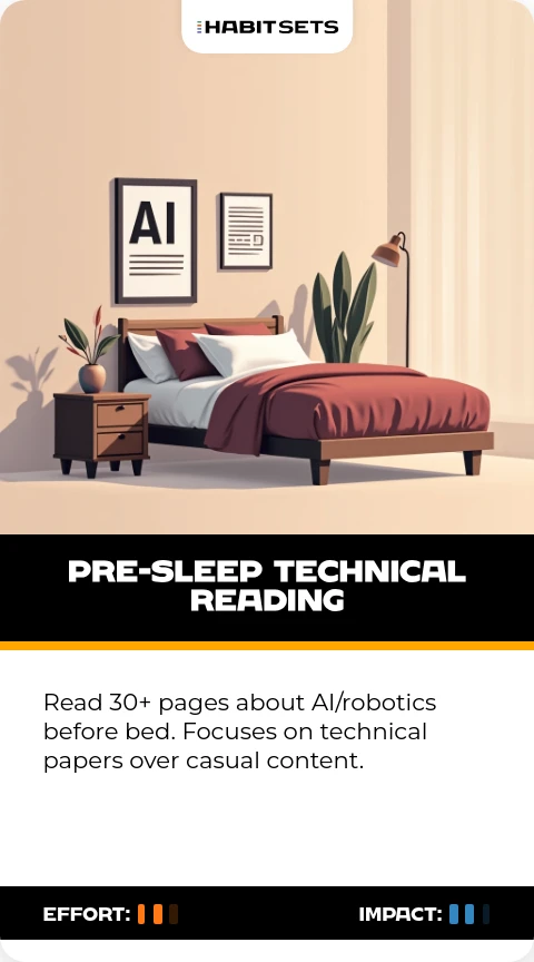 Read 30+ pages about AI/robotics before bed. Focuses on technical papers over casual content.