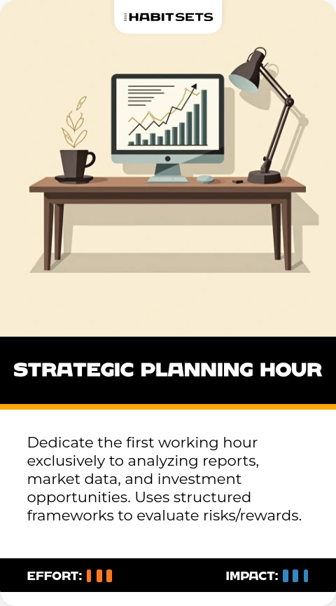 Dedicate the first working hour exclusively to analyzing reports, market data, and investment opportunities. Uses structured frameworks to evaluate risks/rewards.