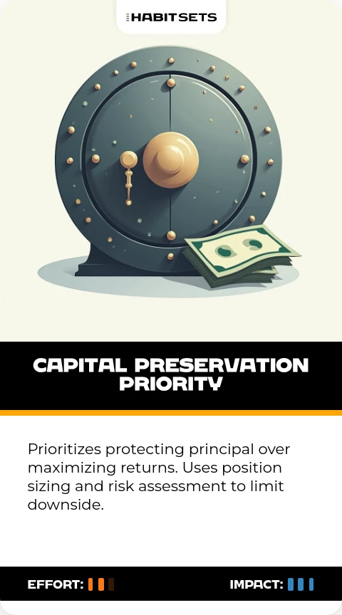 Prioritizes protecting principal over maximizing returns. Uses position sizing and risk assessment to limit downside.