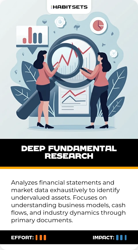 Analyzes financial statements and market data exhaustively to identify undervalued assets. Focuses on understanding business models, cash flows, and industry dynamics through primary documents.