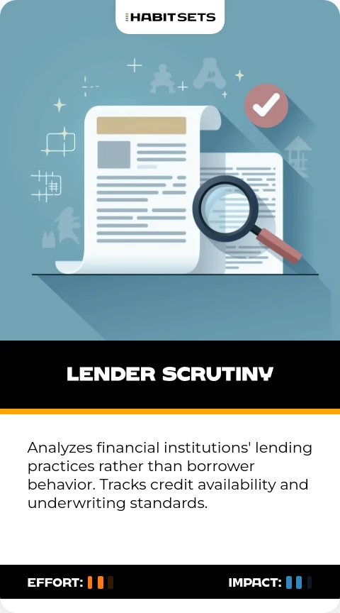 Analyzes financial institutions' lending practices rather than borrower behavior. Tracks credit availability and underwriting standards.