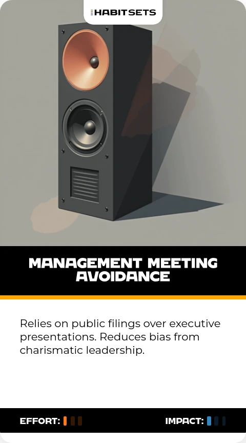 Relies on public filings over executive presentations. Reduces bias from charismatic leadership.