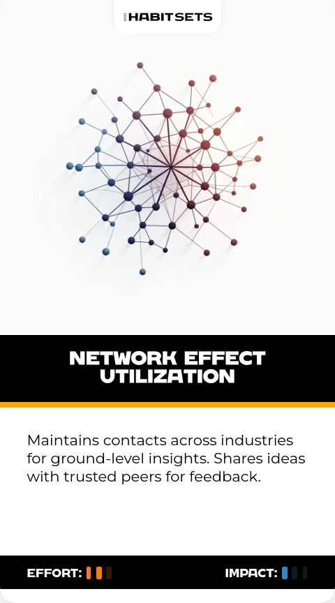 Maintains contacts across industries for ground-level insights. Shares ideas with trusted peers for feedback.