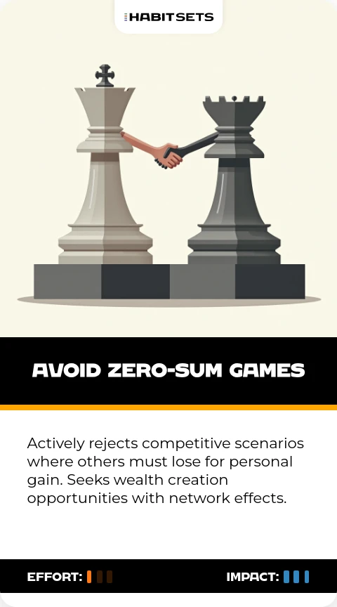 - Strategic and Scalable Thinking: Focus on creating scalable output and avoiding zero-sum games. His habits encourage leveraging your efforts and seeking win-win scenarios that lead to exponential growth rather than linear gains.