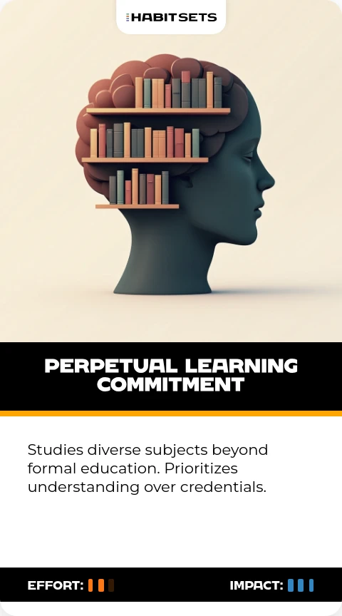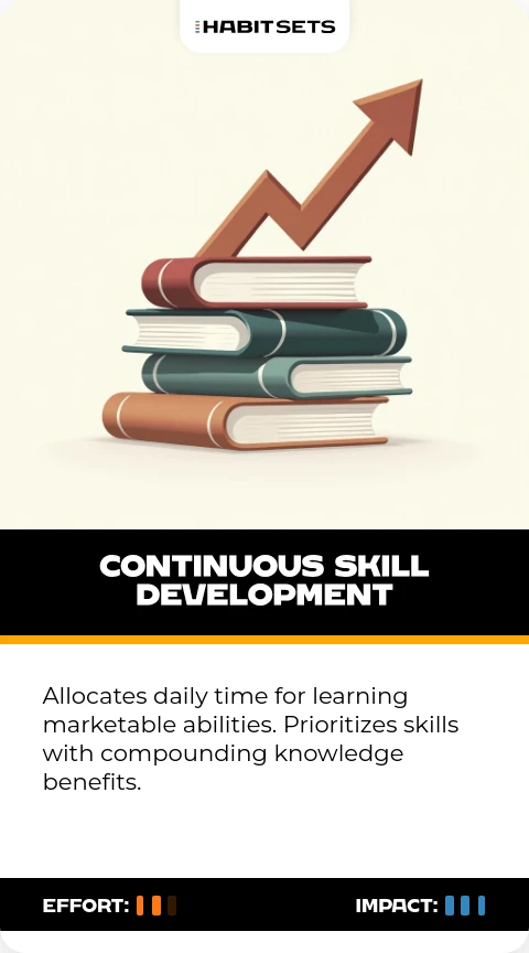 - Continuous Growth and Learning: Embrace perpetual learning and skill development for long-term adaptability. Naval's habits promote a mindset of constant improvement and knowledge acquisition to stay ahead in an ever-evolving world.