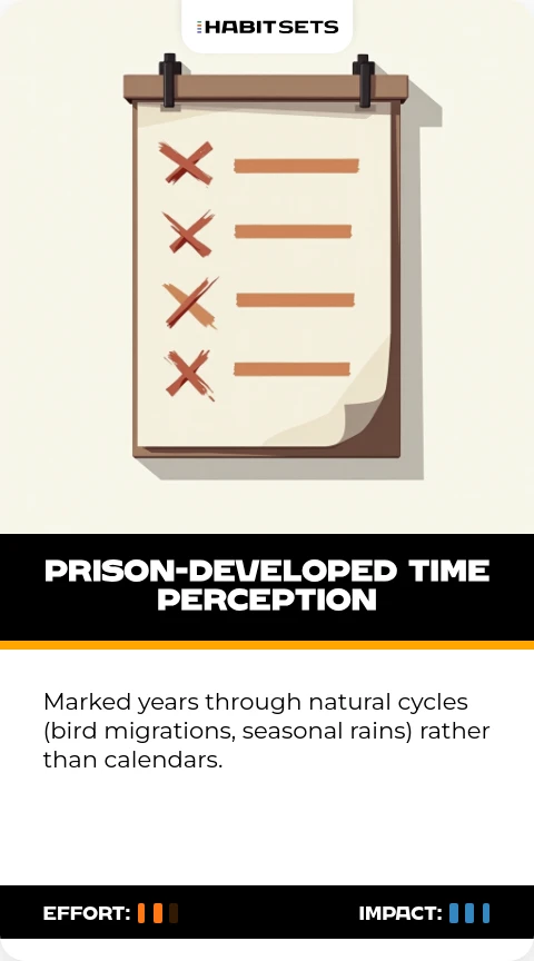 Mandela cultivated this habit to maintain hope during incarceration. It later informed his long-term approach to social change, valuing incremental progress over immediate results.