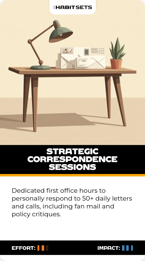 Dedicated first office hours to personally respond to 50+ daily letters and calls, including fan mail and policy critiques.