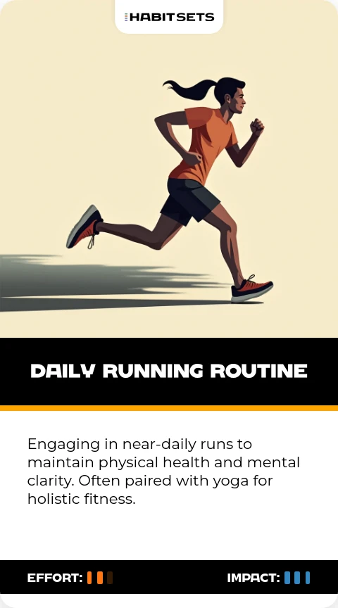 Engaging in near-daily runs to maintain physical health and mental clarity. Often paired with yoga for holistic fitness.
