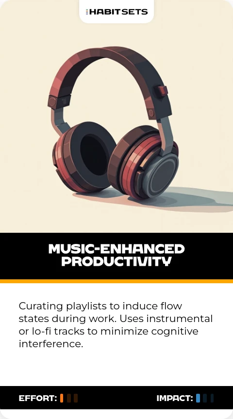 Curating playlists to induce flow states during work. Uses instrumental or lo-fi tracks to minimize cognitive interference.