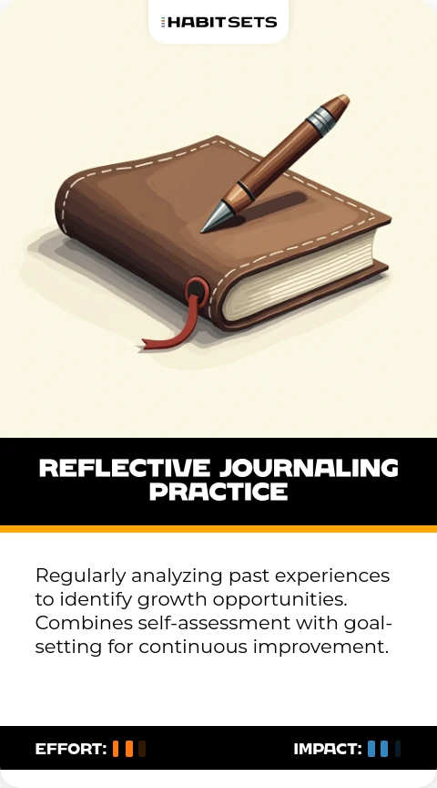 Regularly analyzing past experiences to identify growth opportunities. Combines self-assessment with goal-setting for continuous improvement.