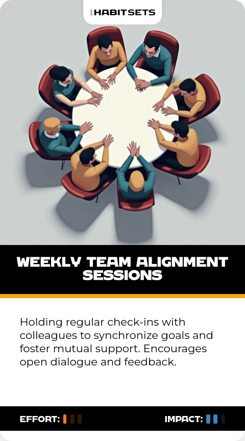 Holding regular check-ins with colleagues to synchronize goals and foster mutual support. Encourages open dialogue and feedback.